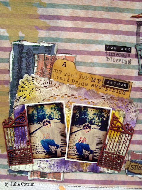 e com um stêncil de estrelas e a mesma textura acobreada, antes de colar as estrelas passei na página de base